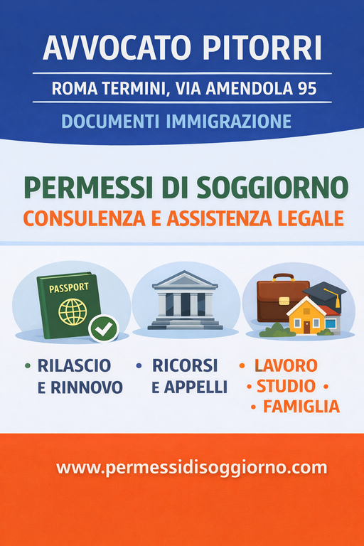 Ottenere o rinnovare un permesso di soggiorno in Italia può diventare un percorso complesso, soprattutto per chi si trova a fronteggiare silenzi, ritardi o dinieghi da parte della Questura. A Roma, città con un’alta concentrazione di cittadini stranieri, è fondamentale poter contare su una consulenza legale specializzata in diritto dell’immigrazione. Lo studio dell’Avvocato Iacopo Maria Pitorri, in via Giovanni Amendola 95, a pochi metri dalla Stazione Termini, è da anni uno dei riferimenti principali per chi necessita di assistenza in questa materia delicata.